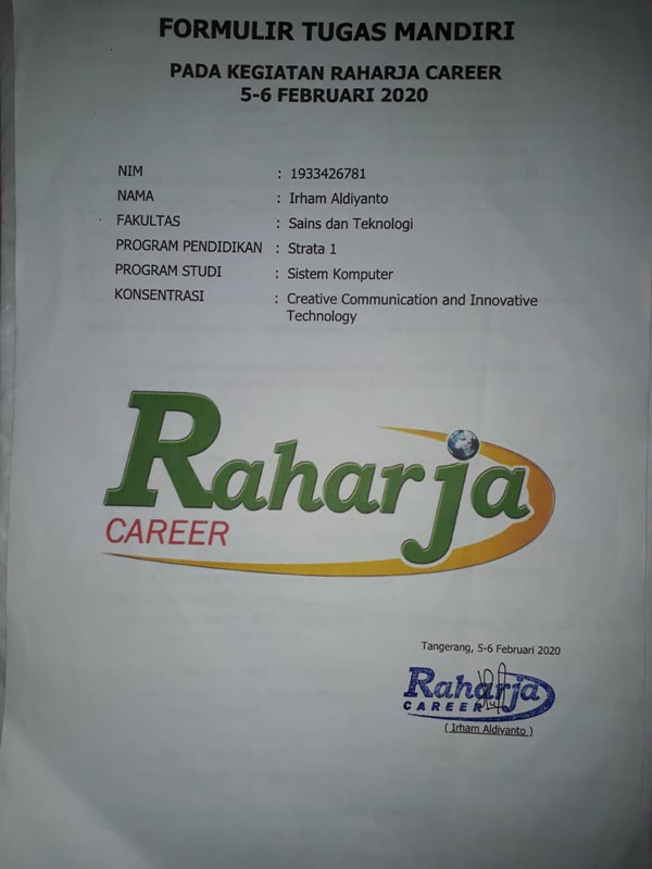 Assignment Raharja Career DL201C Irham Aldiyanto 1933426781