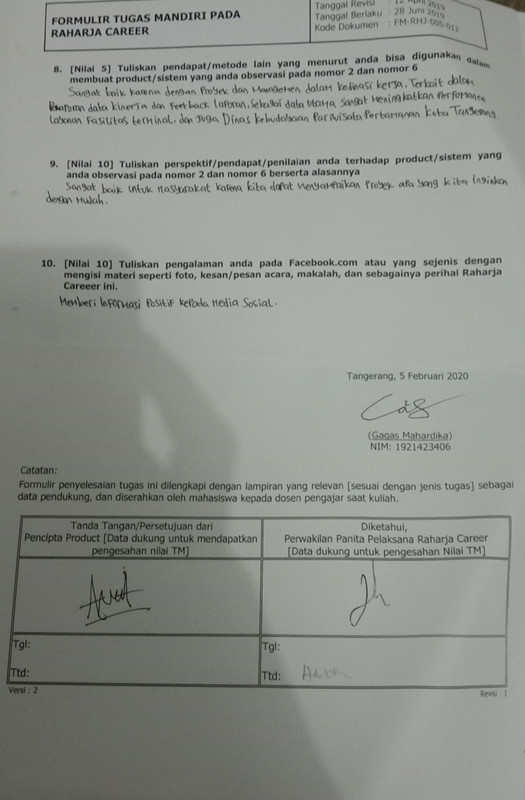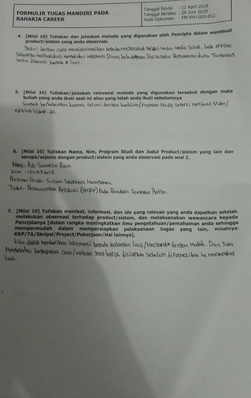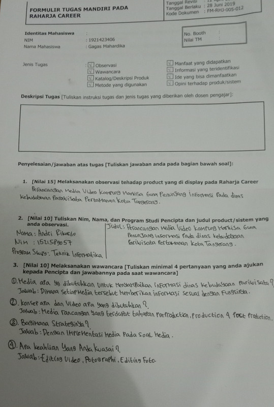 - Form tugas Raharja Career di tanda tangani oleh peserta Raharja Career dan di stempel oleh Panitia Raharja Career.