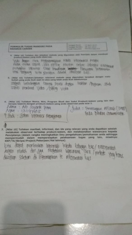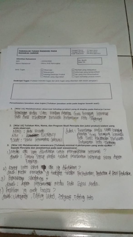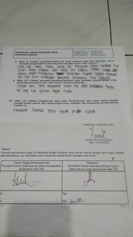4. Form tugas Raharja Career di tanda tangani oleh peserta Raharja Career dan di stempel oleh Panitia Raharja Career.