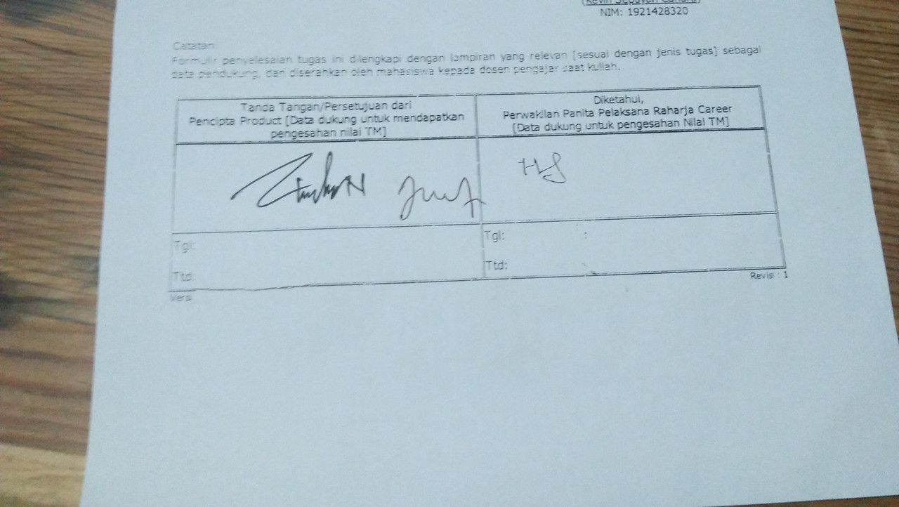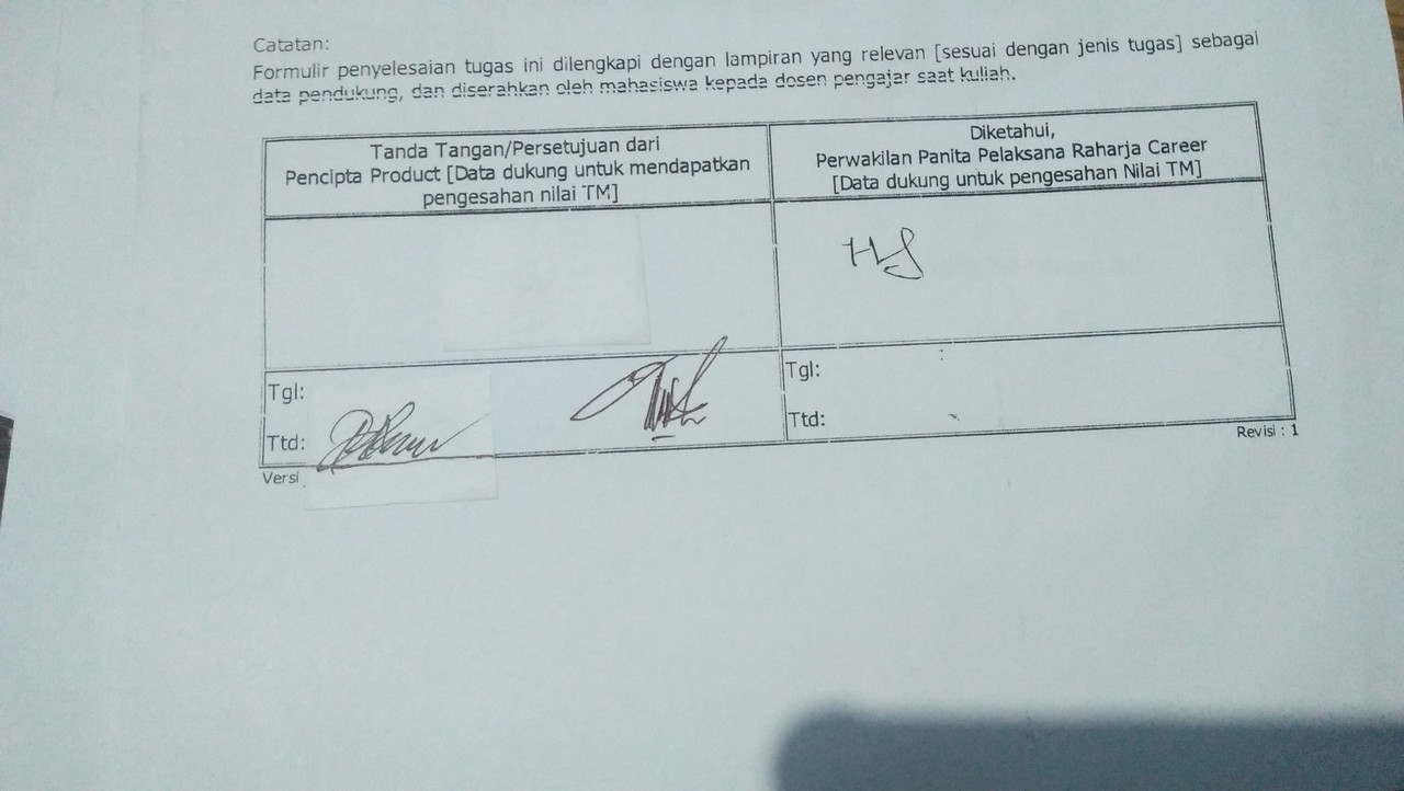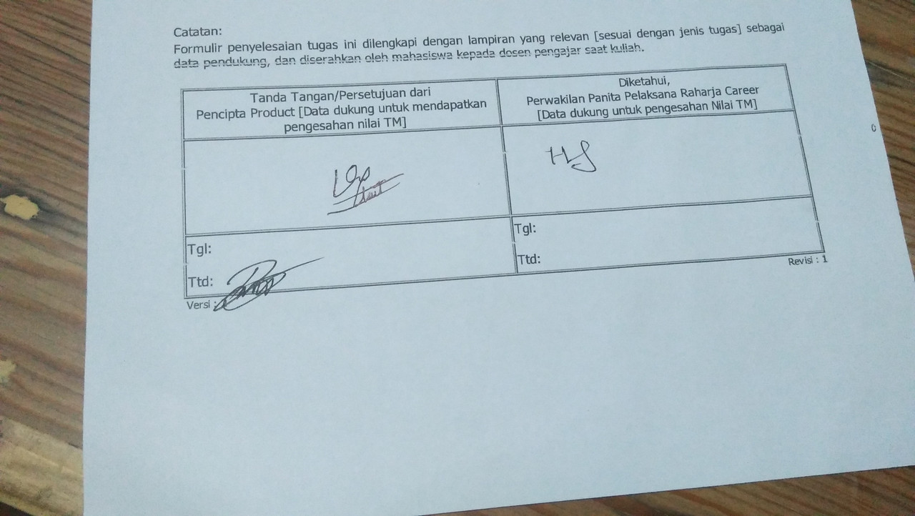 - Form tugas Raharja Career di tanda tangani oleh peserta Raharja Career dan di stempel oleh Panitia Raharja Career.