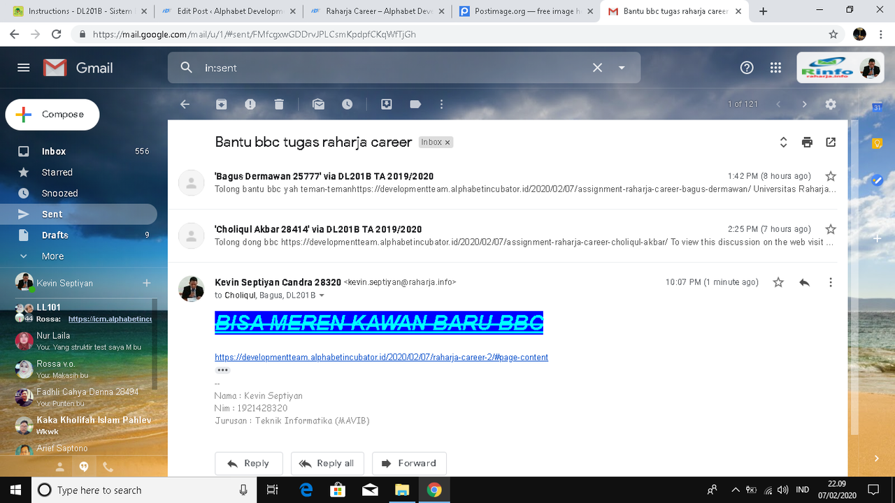 - Lampirkan pembuktian bahwa anda telah mengikuti acara tersebut dan post foto bersama peserta Raharja Career yang di upload ke Instagram kalian dengan hastag #RaharjaCareer2020 #RaharjaCareer_DL201B #HaveFunRC_DL201B dan tag ke @campus_raharja @alphabet.incubator @untungrahardja @nindalutfiani.
