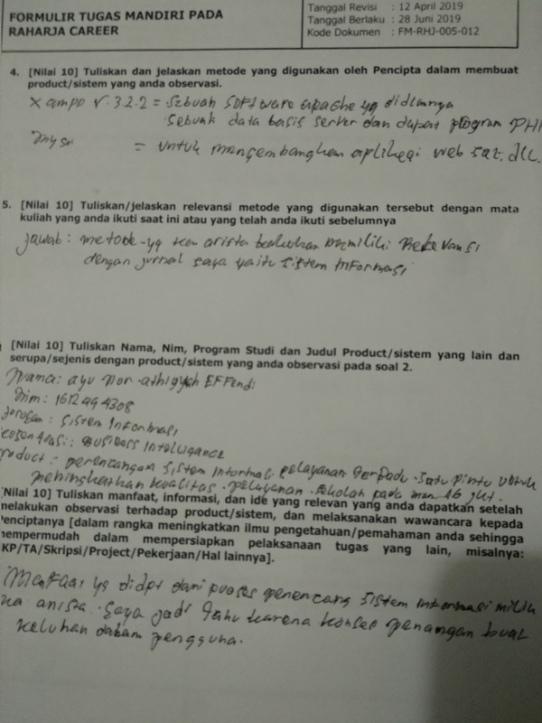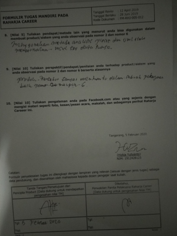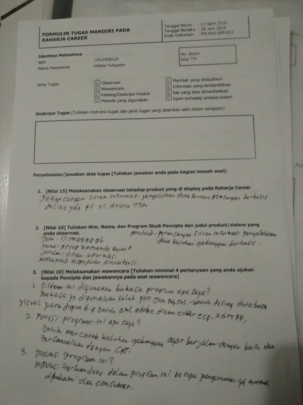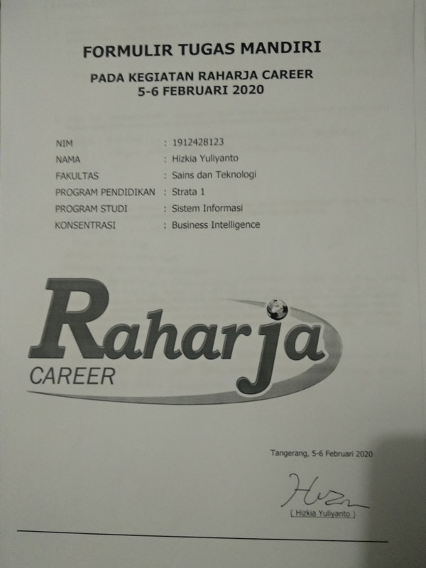 - Form tugas Raharja Career di tanda tangani oleh peserta Raharja Career dan di stempel oleh Panitia Raharja Career.