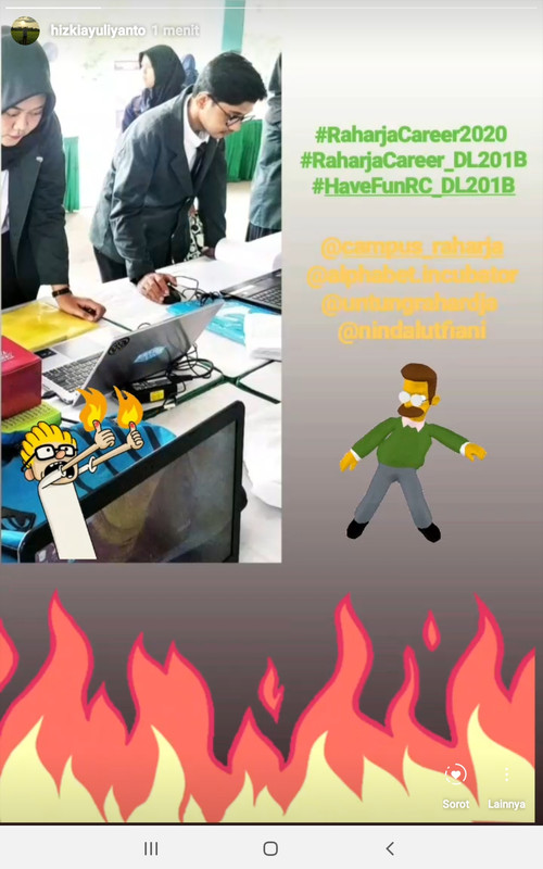 - Lampirkan pembuktian bahwa anda telah mengikuti acara tersebut dan post foto bersama peserta Raharja Career yang di upload ke Instagram kalian dengan hastag#RaharjaCareer2020 #RaharjaCareer_DL201B #HaveFunRC_DL201B dan tag ke@campus_raharja @alphabet.incubator@untungrahardja @nindalutfiani.
