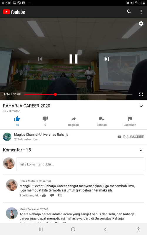- Lakukan VLC (view, like comment) pada video Raharja Career