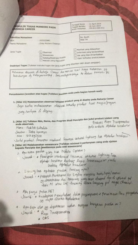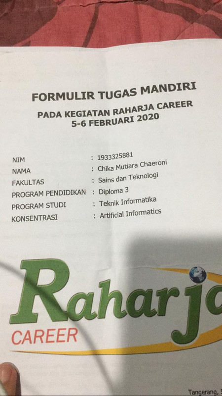 - Form tugas Raharja Career ditandatangani oleh peserta Raharja Career dan distempel panitia Raharja Career.