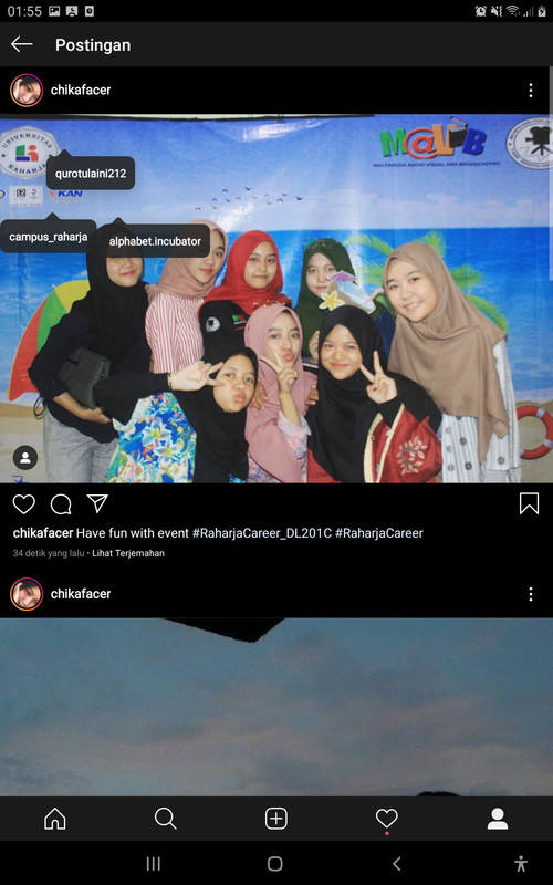 - Update feed ke Instagram masing-masing dengan tag mamoi (@qurotulaini212), Kampus (@campus_raharja) dan Alphabet Incubator @alphabet.incubator) dan dengan hashtag #RaharjaCareer_DL201C #RaharjaCareer serta caption harus menarik ya