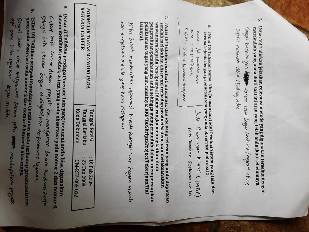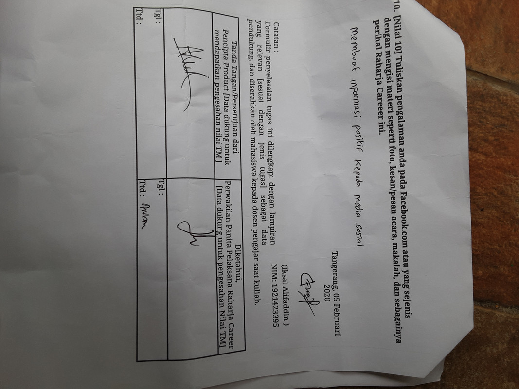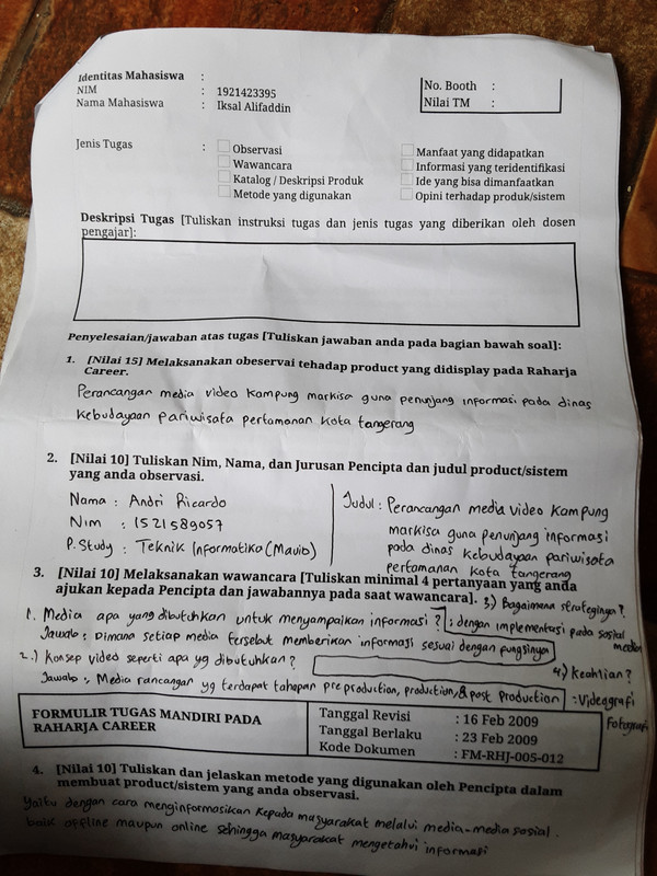 4. Form tugas Raharja Career di tanda tangani oleh peserta Raharja Career dan di stempel oleh Panitia Raharja Career.