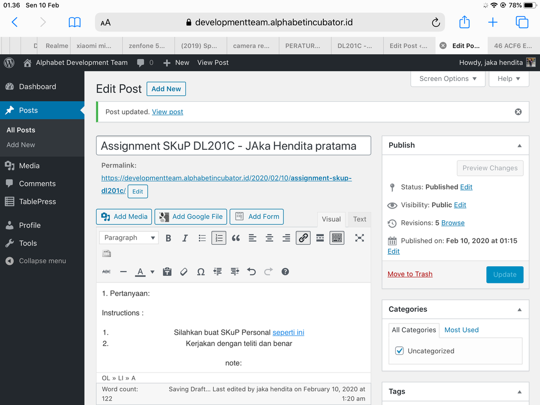 - Semua jawaban dalam DL201C ini dilaporkan dalam bentuk seperti ini dengan cara Add New Post di dalam Class DL201C.