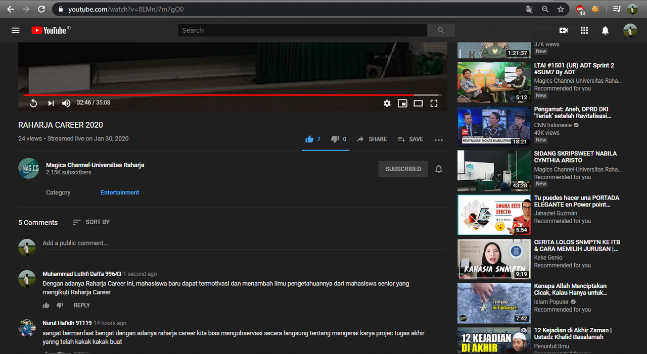 - Lakukan VLC (view, like comment) pada video Raharja Career
