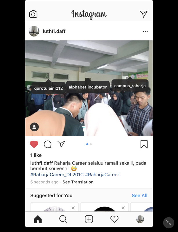 - Update feed ke Instagram masing-masing dengan tag mamoi (@qurotulaini212), Kampus (@campus_raharja) dan Alphabet Incubator @alphabet.incubator) dan dengan hashtag #RaharjaCareer_DL201C #RaharjaCareer serta caption harus menarik ya