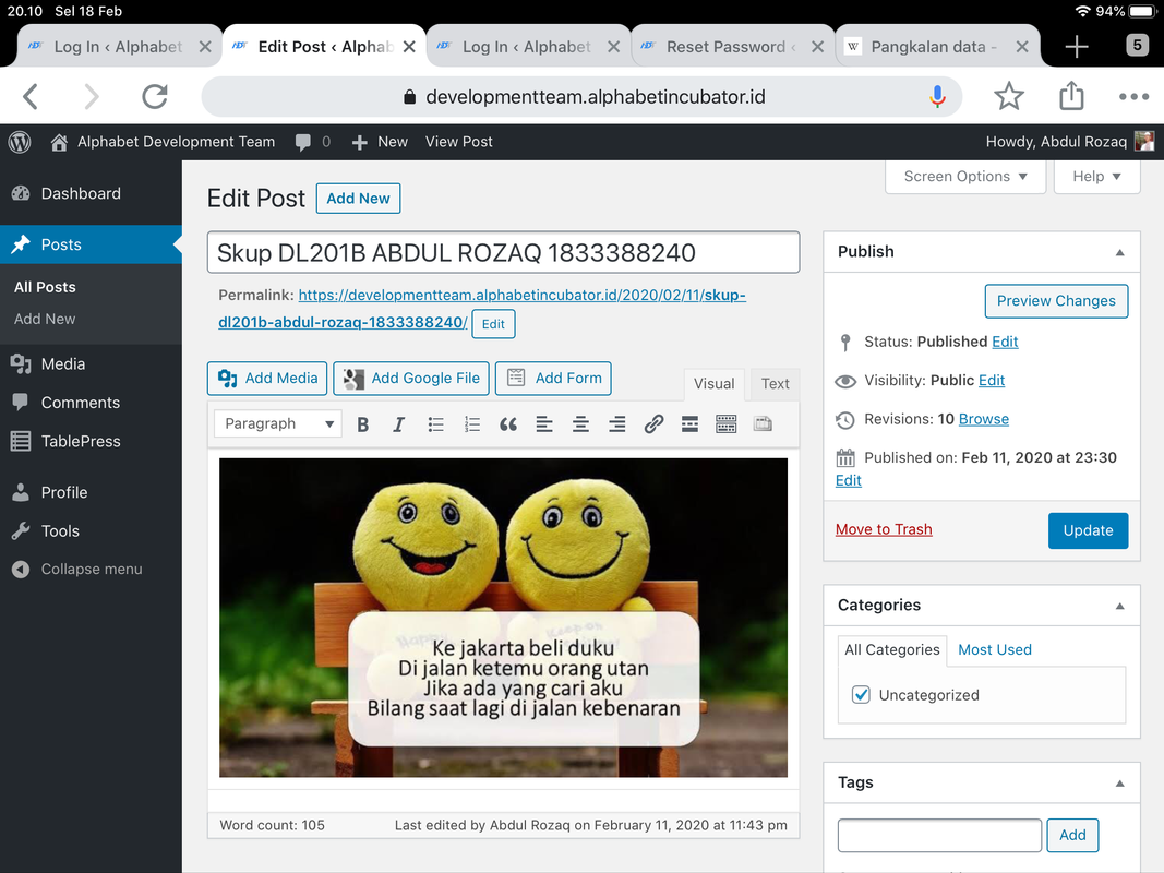 5. Langkah terakhir yaitu semua jawaban dalam iMe ini dilaporkan dalam bentuk seperti ini dengan cara Add New Post di dalam iMe yang kemudian juga dikirim ke milis [email protected] untuk di BBC oleh minimal 12 teman.