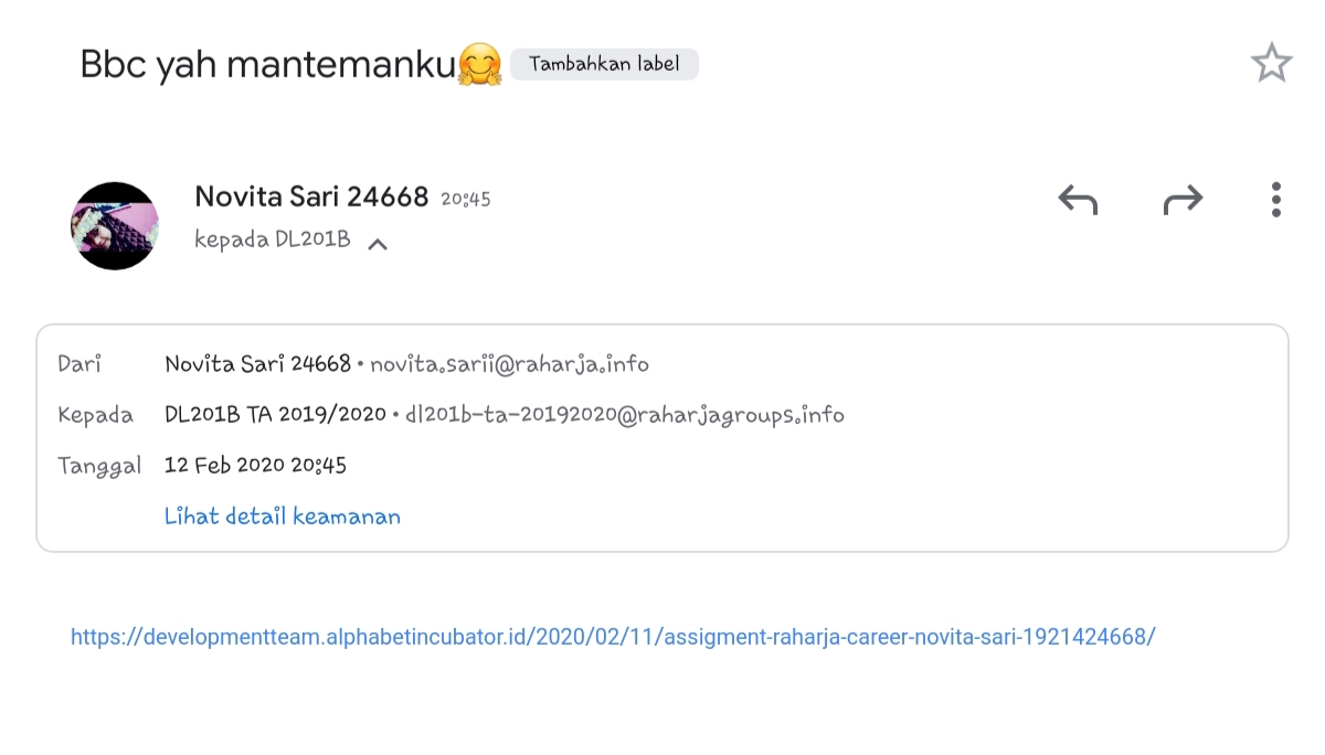 Assigment Raharja Career DL201B – Novita Sari (1921424668)