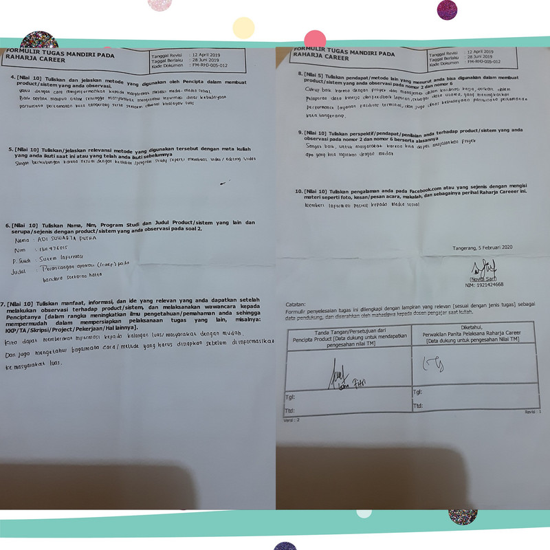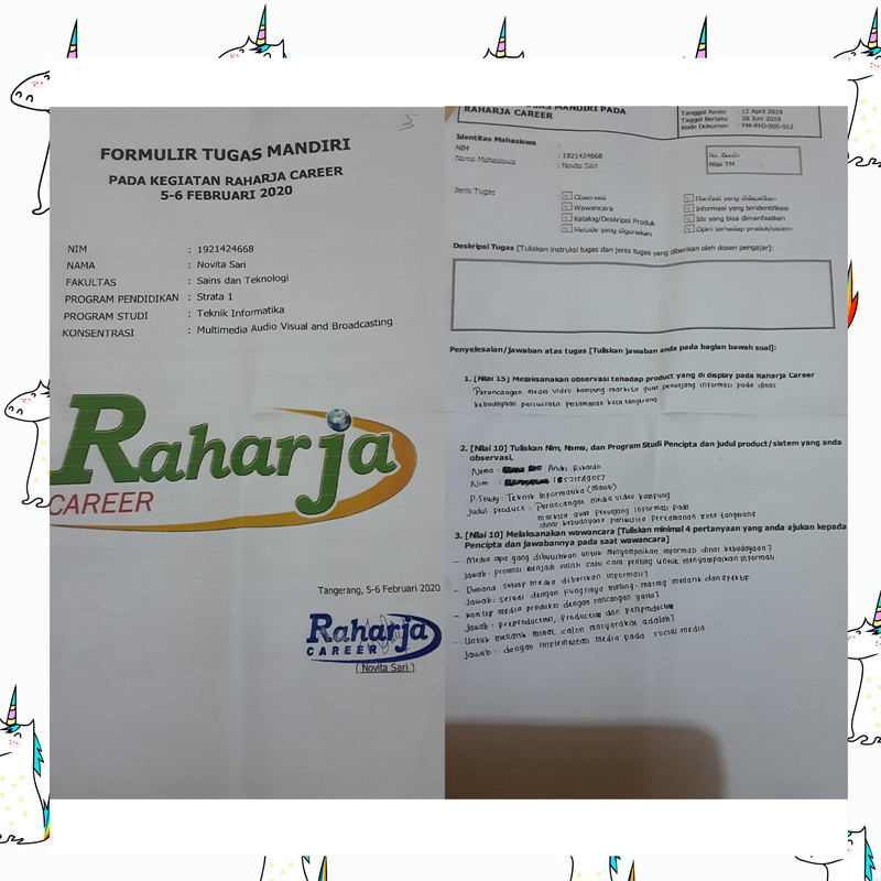 4. Form tugas Raharja Career di tanda tangani oleh peserta Raharja Career dan di stempel oleh Panitia Raharja Career.