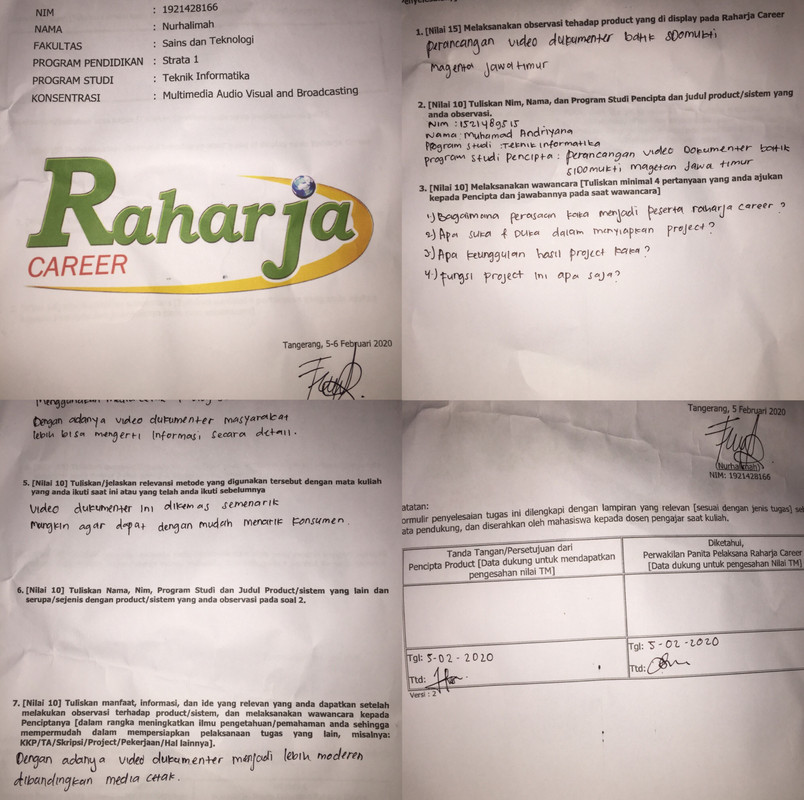 - Form tugas Raharja Career di tanda tangani oleh peserta Raharja Career dan di stempel oleh Panitia Raharja Career.