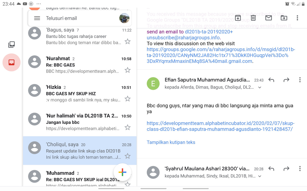 - SKuP yang telah selesai dibuat harus dikirim ke milis class [email protected] untuk di BBC oleh minimal 12 teman. Contoh Email :