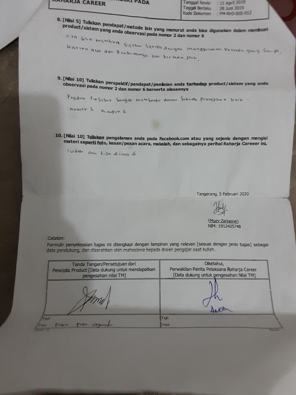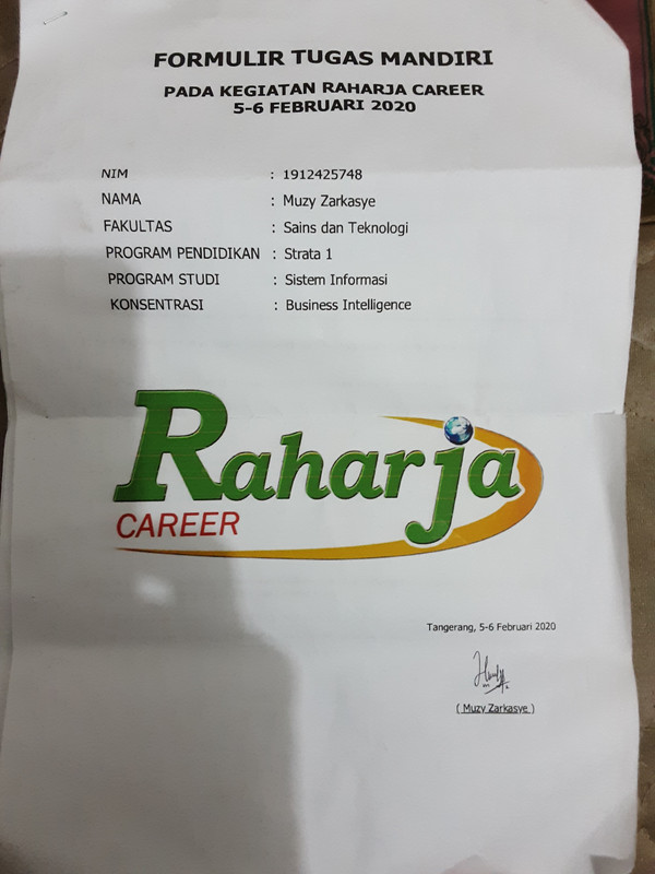 - Form tugas Raharja Career ditandatangani oleh peserta Raharja Career dan distempel panitia Raharja Career.
