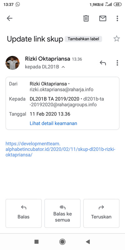 - Pastikan SKuP kalian ter-link DISINI, Maka segera lakukan proses request dengan cara mengirimkan email ke dalam milis [email protected] dengan subjek email “Request Update Link SKuP Class DL201B”.Misalnya, jika belum ada yang kirim SKuP bisa dimulai oleh satu orang buat subject pada milis yaitu “Request Update Link SKuP Class DL201B” namun jika dari Class DL201B sudah ada yang mengirim SKuP di milis, yang lain bisa balas dengan Reply All. Tidak membuat subjek yang baru.