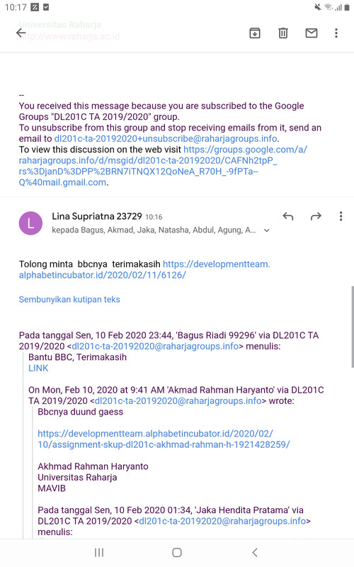 - Jika sudah menyelesaikan assignment wajib melakukan share ke milis [email protected] untuk lakukan diskusi dan dikomentari oleh minimal 3 teman baik di milis maupun pada link jawaban.