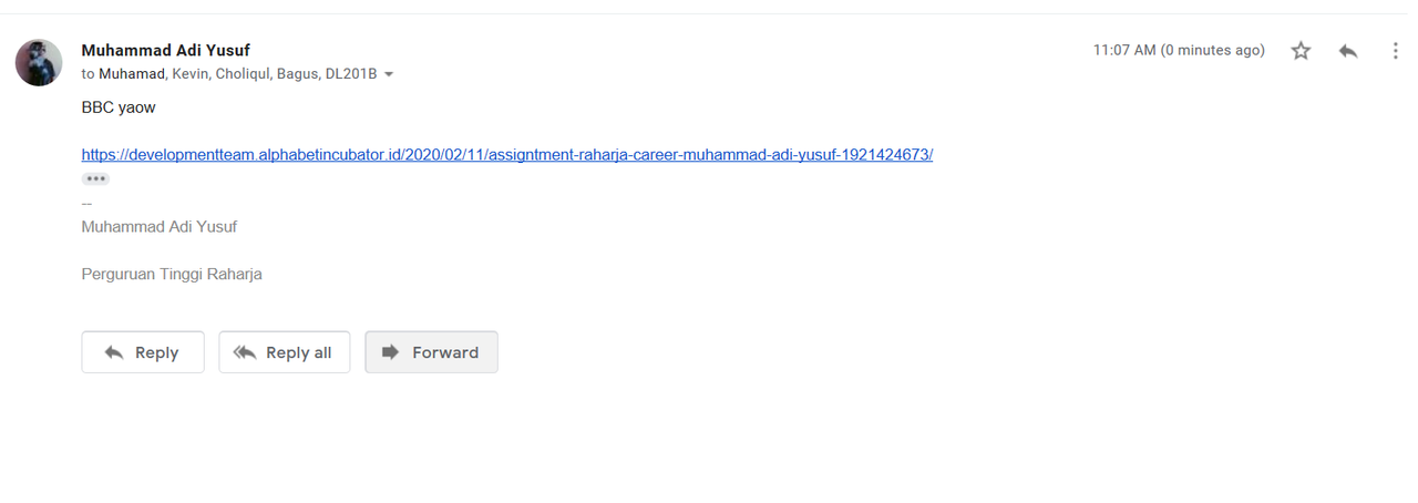 6. Lampirkan pembuktian bahwa anda telah mengikuti acara tersebut dan post foto bersama peserta Raharja Career yang di upload ke Instagram kalian dengan hastag #RaharjaCareer2020 #RaharjaCareer_DL201B #HaveFunRC_DL201B dan tag ke @campus_raharja @alphabet.incubator @untungrahardja @nindalutfiani.