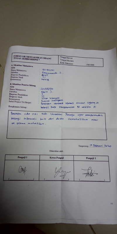 - Tulis minimal 3 (tiga) pertanyaan sidang yang diajukan penguji kepada peserta sidang.