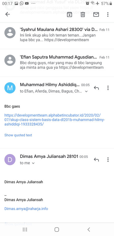 - Pastikan SKuP kalian ter-link DISINI, Maka segera lakukan proses request dengan cara mengirimkan email ke dalam milis [email protected] dengan subjek email “Request Update Link SKuP Class DL201B”.Misalnya, jika belum ada yang kirim SKuP bisa dimulai oleh satu orang buat subject pada milis yaitu “Request Update Link SKuP Class DL201B” namun jika dari Class DL201B sudah ada yang mengirim SKuP di milis, yang lain bisa balas dengan Reply All. Tidak membuat subjek yang baru.