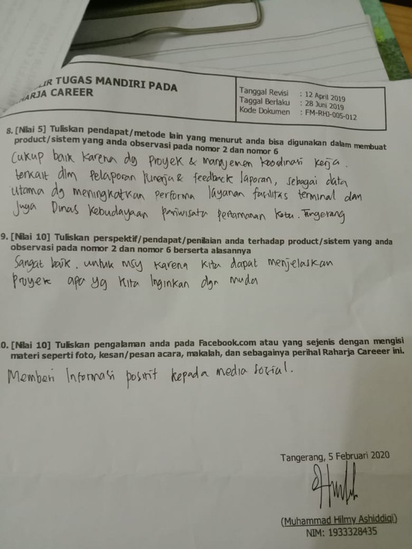 Assignment Raharja Career – Muhammad Hilmy Ashiddiqi 1933328435