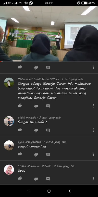 3. Lakukan VLC (lihat, suka komentar) pada video Raharja Career