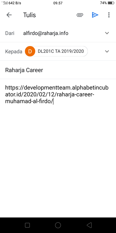 - Buat Cermi (Cerita Keseruan) Raharja Career yang telah selesai dibuat harus dikirim ke milis class yaitu [email protected]