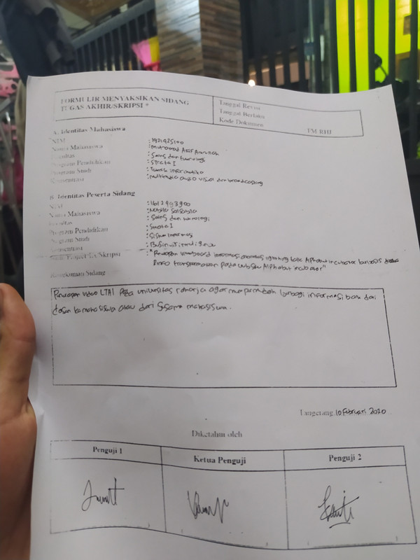 - Tulis minimal 3 (tiga) pertanyaan sidang yang diajukan penguji kepada peserta sidang.