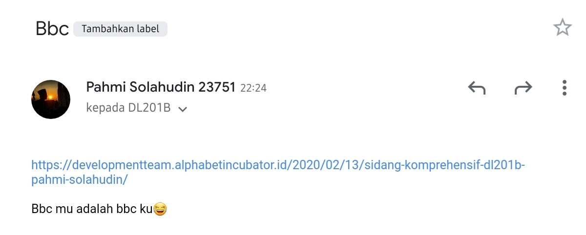 3. Jika sudah selesai tugas wajib melakukan share ke milis [email protected] untuk melakukan diskusi dan di BBC oleh minimal 12 teman baik di ADT.