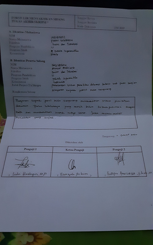 - Sidang Komprehensif mulai tanggal 10 hingga 19 Februari 2020