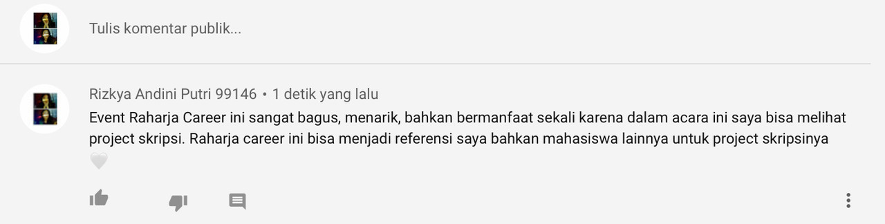 - Lakukan VLC (view, like comment) pada video Raharja Career