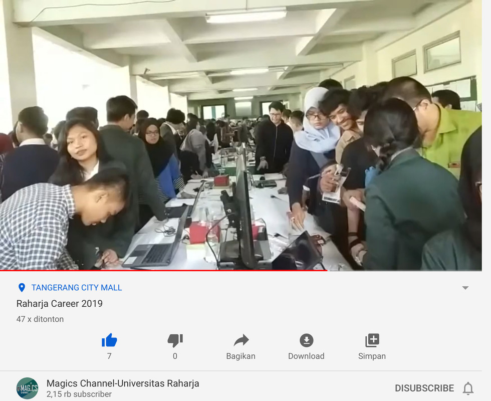 - Kunjungi stand Raharja Career yang diselenggarakan oleh Perguruan Tinggi Raharja pada tanggal 5 Februari 2020 dengan ada 2 sesi pagi dan siang.
