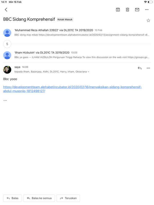 - Langkah terakhir yaitu semua jawaban dalam iMe Class dilaporkan dalam bentuk seperti inidengan cara Add New Post di dalam iMe Class DL201C yang kemudian juga dikirim ke milis [email protected] untuk lakukan diskusi dan dikomentari oleh minimal 8 comment baik di milis maupun pada link jawaban.