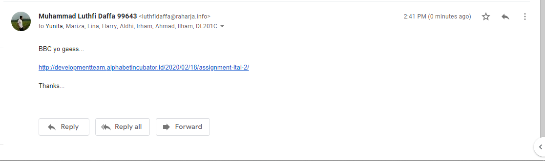 1. Pahami materi Pertemuan 1 pada website https://developmentteam.alphabetincubator.id/2020/01/29/materi-perkuliahan-dl201c-ta-2019-2020/ dan melakukan BBC pada pertemuan tersebut.