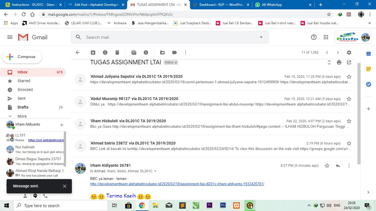 1. Pahami materi Pertemuan 1 pada website https://developmentteam.alphabetincubator.id/2020/01/29/materi-perkuliahan-dl201c-ta-2019-2020/ dan melakukan BBC pada pertemuan tersebut.
