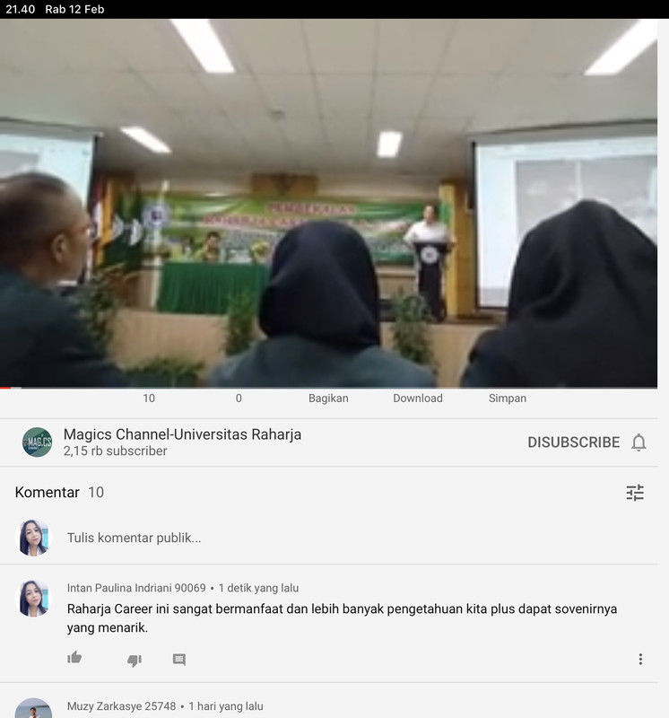 2. Lakukan VLC (view, like comment) pada video Raharja Career (Done)