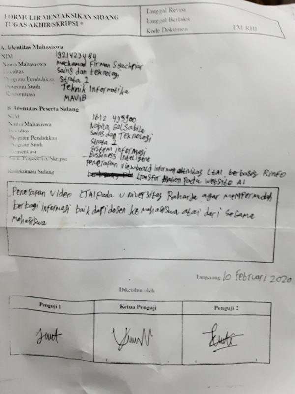 • Sidang Komprehensif mulai tanggal 10 sampai 19 Februari 2020