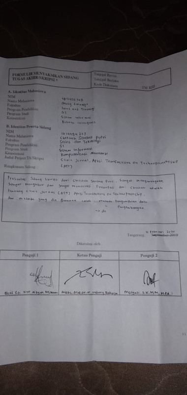 Judul Project TA/Skripsi : Clinic Jurnal Aptisi Transactions On Technopreneurship
