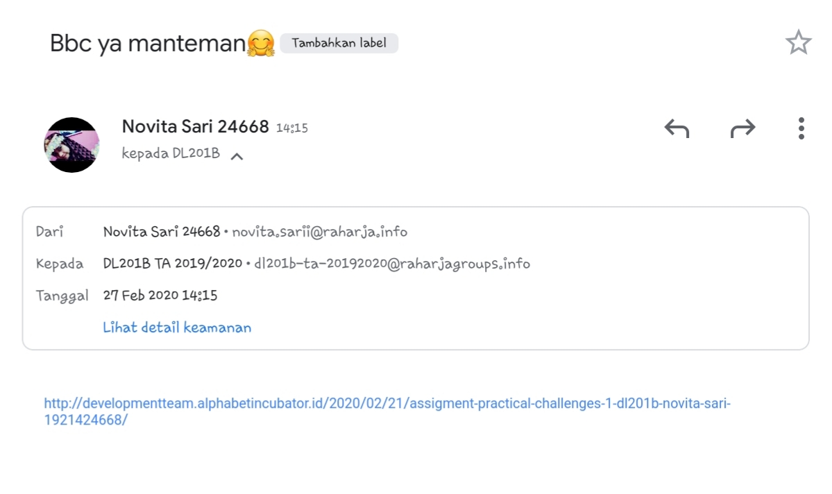 Assigment Practical Challenges #1 DL201B – Novita Sari (1921424668)