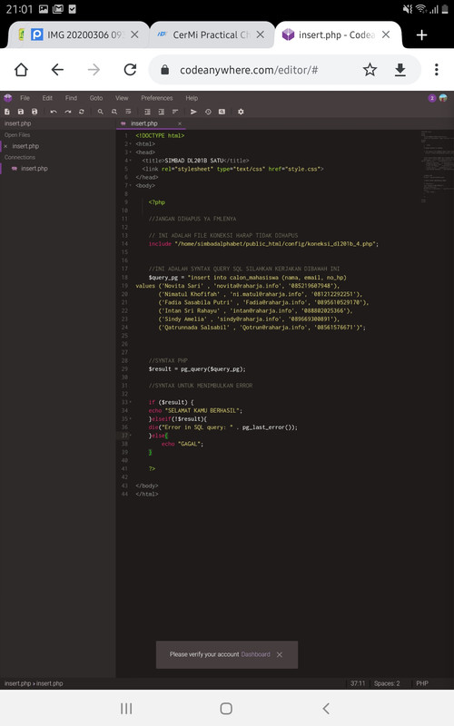 Disini saya akan menjelaskan tentang FTP serta cara menyambungkannya dan cara membuat tabel, untuk menyambungkan FTP ini saya menggunakan codeanywhere .
