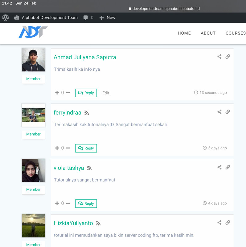 5. Langkah terakhir yaitu semua jawaban ke dalam https://developmentteam.alphabetincubator.id/ dengan cara Add New Post di dalam https://developmentteam.alphabetincubator.id/ yang kemudian juga dikirim ke milis [email protected] untuk lakukan diskusi dan dikomentari oleh minimal 3 comment baik di milis maupun pada link jawaban.