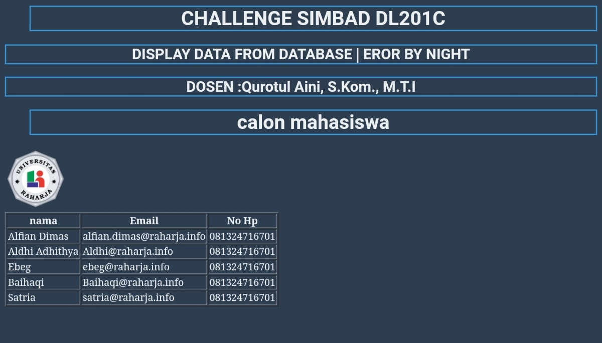5. LTAI hasil praktikum pertemuan 4 dengan Judul : LTAI #…. (QA) Praktikum 2 Insert dan Select Data calon Mahasiswa DL201C by (Namamhs)