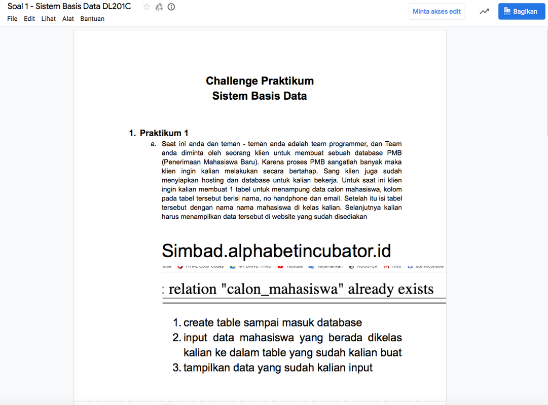 5. LTAI hasil praktikum pertemuan 4 dengan Judul : LTAI #…. (QA) Praktikum 2 Insert dan Select Data calon Mahasiswa DL201C by (Namamhs)