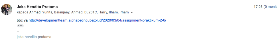 6. Langkah terakhir yaitu semua jawaban ke dalam https://developmentteam.alphabetincubator.id/ dengan cara Add New Post di dalam https://developmentteam.alphabetincubator.id/ yang kemudian juga dikirim ke milis  [email protected] untuk lakukan diskusi dan dikomentari oleh minimal 3 comment baik di milis maupun pada link jawaban.