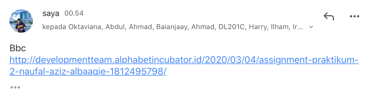6. Langkah terakhir yaitu semua jawaban ke dalam https://developmentteam.alphabetincubator.id/ dengan cara Add New Post di dalam https://developmentteam.alphabetincubator.id/ yang kemudian juga dikirim ke milis [email protected] untuk lakukan diskusi dan dikomentari oleh minimal 3 comment baik di milis maupun pada link jawaban.