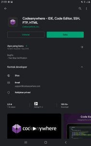 1. Pastikan Kamu sudah mendownload APK  codeanywhere di PlayStore ataupun AppStore agar bisa melakukan tugasnya.