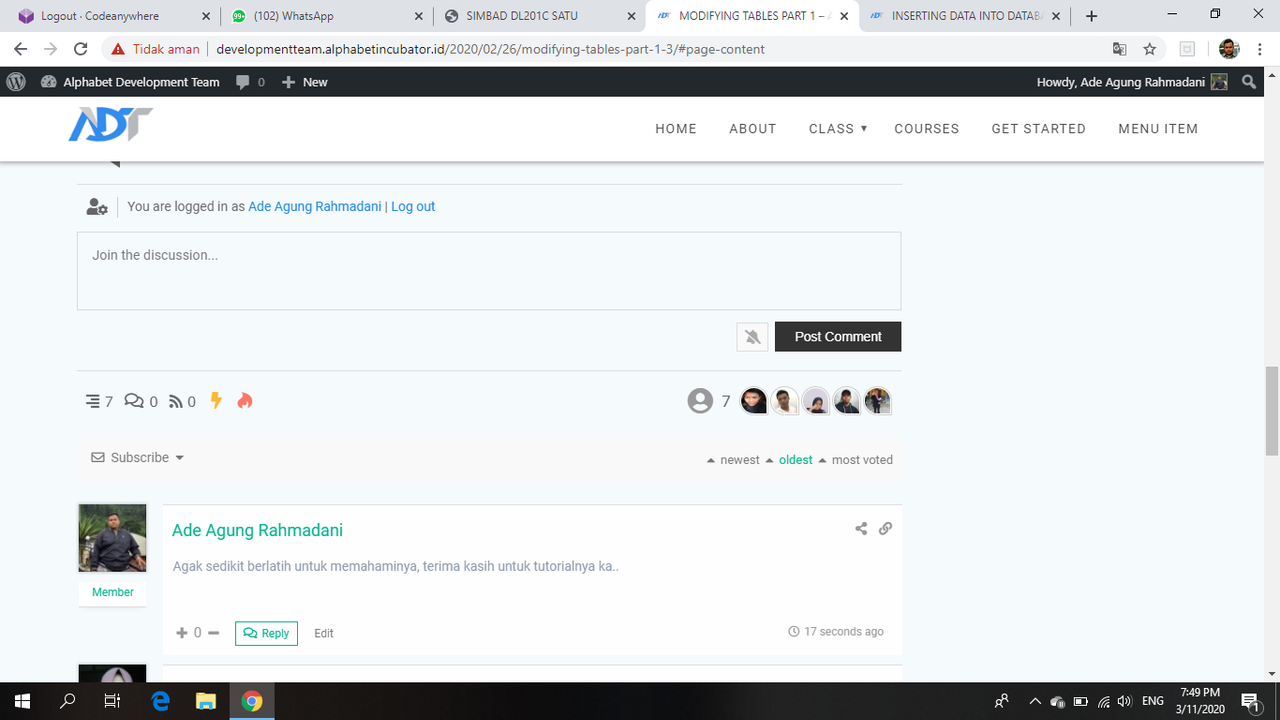 5 . Langkah terakhir yaitu semua jawaban ke dalam https://developmentteam.alphabetincubator.id/ dengan cara Add New Post di dalam https://developmentteam.alphabetincubator.id/ yang kemudian juga dikirim ke milis  [email protected] untuk lakukan diskusi dan dikomentari oleh minimal 3 comment baik di milis maupun pada link jawaban.