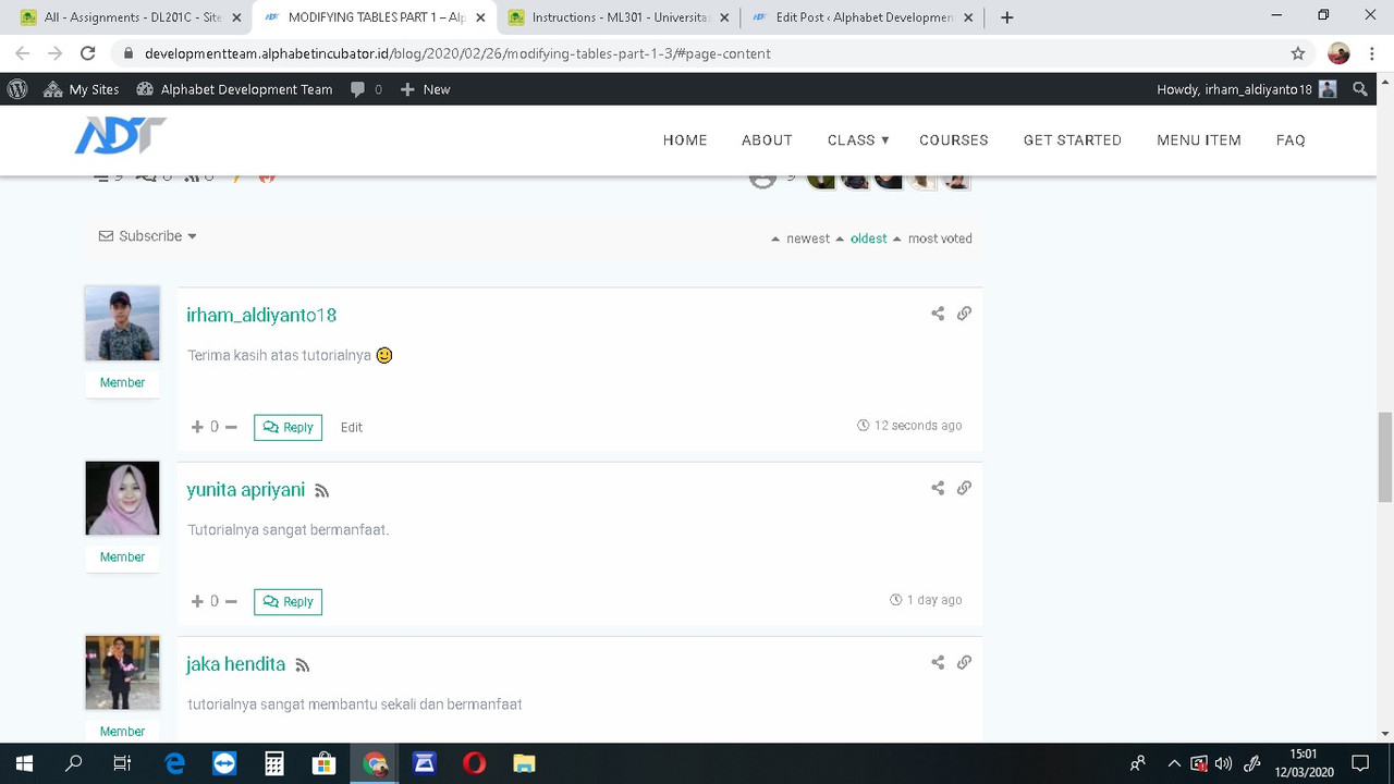5 . Langkah terakhir yaitu semua jawaban ke dalam https://developmentteam.alphabetincubator.id/ dengan cara Add New Post di dalam https://developmentteam.alphabetincubator.id/ yang kemudian juga dikirim ke milis  [email protected] untuk lakukan diskusi dan dikomentari oleh minimal 3 comment baik di milis maupun pada link jawaban.