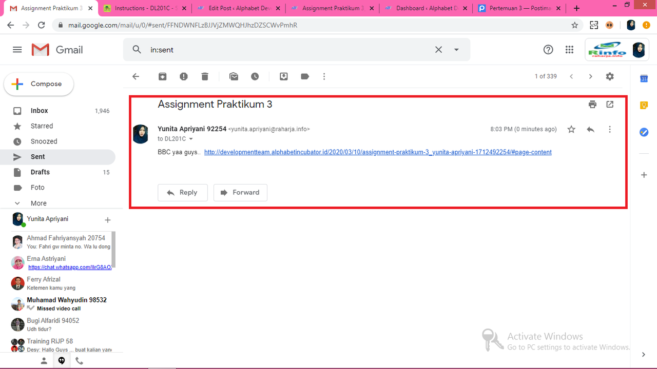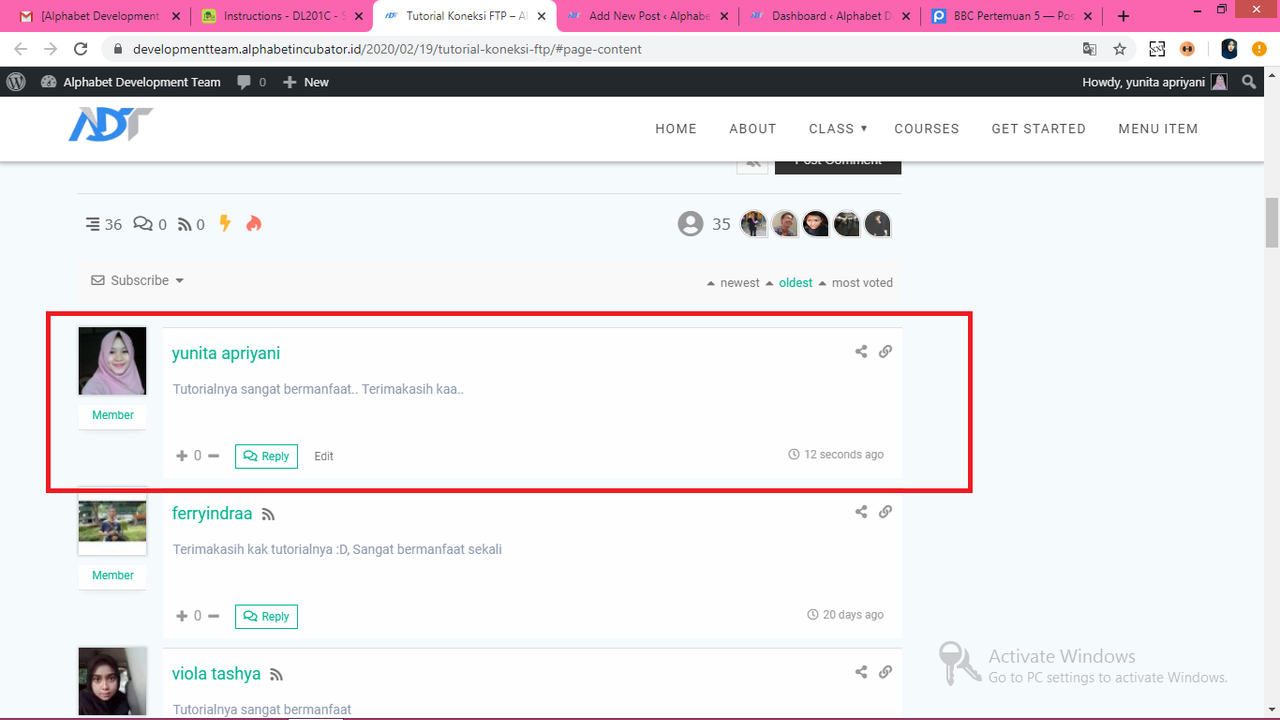 5 . Langkah terakhir yaitu semua jawaban ke dalam https://developmentteam.alphabetincubator.id/ dengan cara Add New Post di dalam https://developmentteam.alphabetincubator.id/ yang kemudian juga dikirim ke milis [email protected] untuk lakukan diskusi dan dikomentari oleh minimal 3 comment baik di milis maupun pada link jawaban.